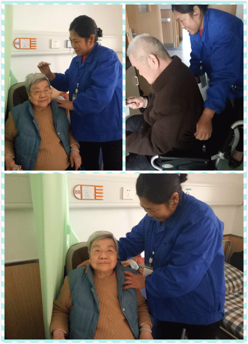 ![]() 阿婆告诉我说刚来的时候对新环境的不熟悉,对新生活的陌生,他们有点不适应,也不愿和其他老人一起活动。但是渐渐的医生护士的专业照顾、护士的细心照料让他们放下了心中的不安,其他老人的亲切也让他们倍感温暖,现在他们找到了伙伴一起聊天、打麻将,日常生活有医护人员的照料,生活的非常开心和安心。