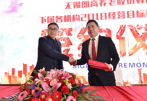 ![]() ![]() ▲各机构院长及人才开发公司负责人与无锡朗高养老股份公司董事会签订《2018经营业绩承包责任书》。