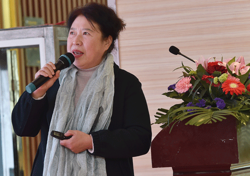 ![]() ▲浙江朗高医疗股份有限公司副总经理、台州黄岩朗高护理院、台州黄岩朗高养老院院长王淑云同志作工作报告。