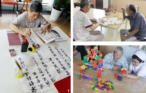 与这些夏热相比,小朗在朗高看到了另一番清凉。活动室里开着空调,老人有的下棋,有的写毛笔字,有的则三五成群聊着天。