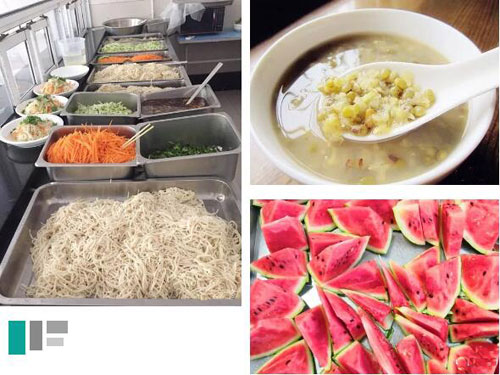 ![]() 夏季是炊事人员最艰难的季节,朗高厨房工作人员顶着高温忙碌着一天的饭菜。