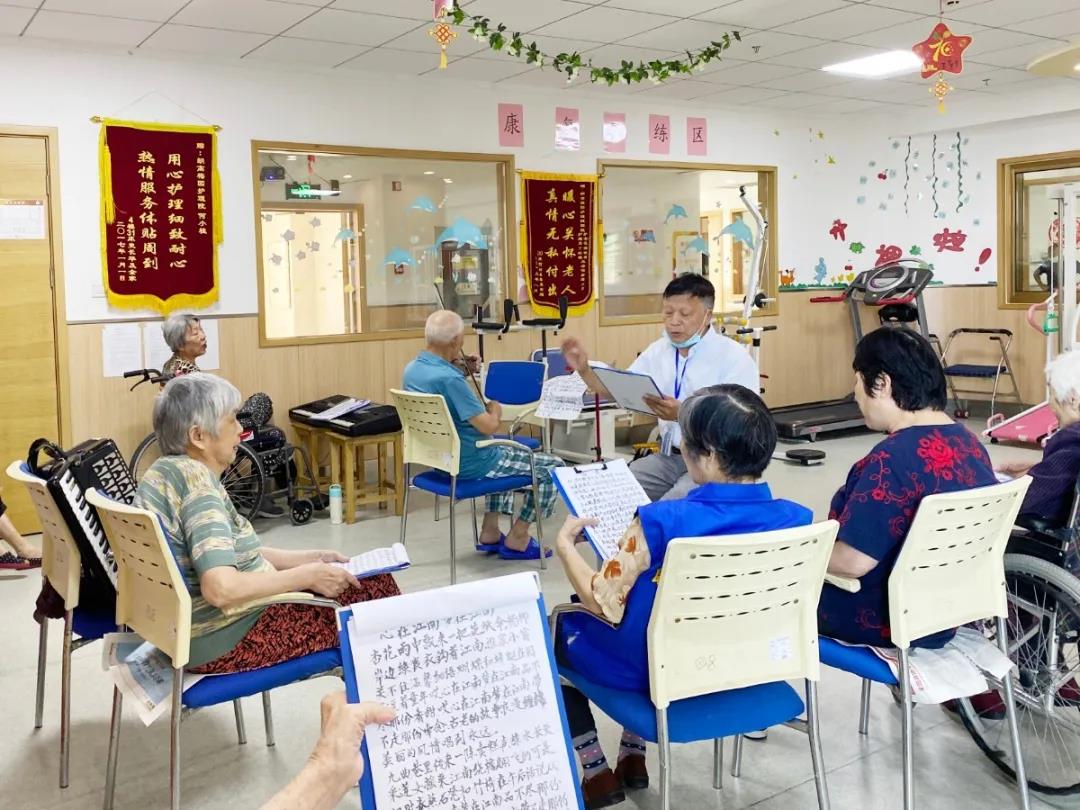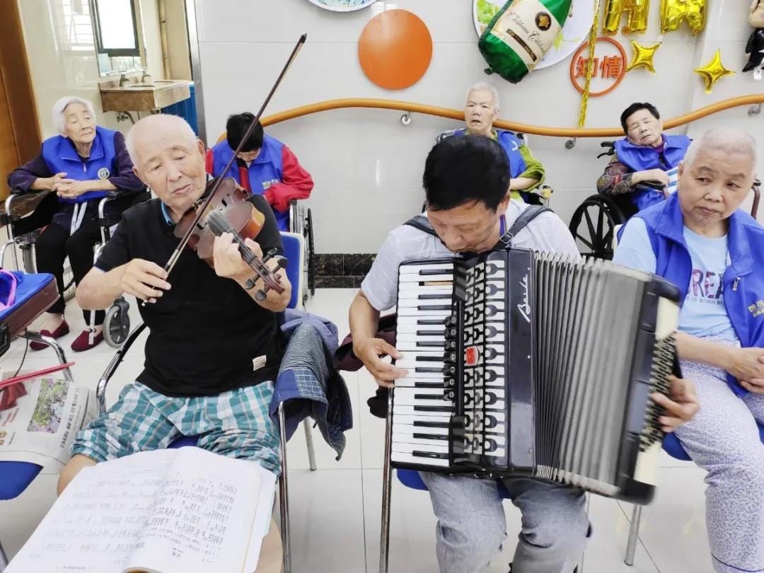 “你我为了理想,历尽了艰苦,我们曾经哭泣,也曾共同欢笑”…走进无锡梅园护理院活动室,远远就能听到隐隐的歌声,循着歌声传来的方向走近一些,听清了是一群人在大合唱《闪亮的日子》。歌声算不上太优美,却也还算是耐听,有着那种大合唱应有的气势和感人之处,原来是机构老人与音乐老师们组织的梅兰音乐班正在进行日常演奏。